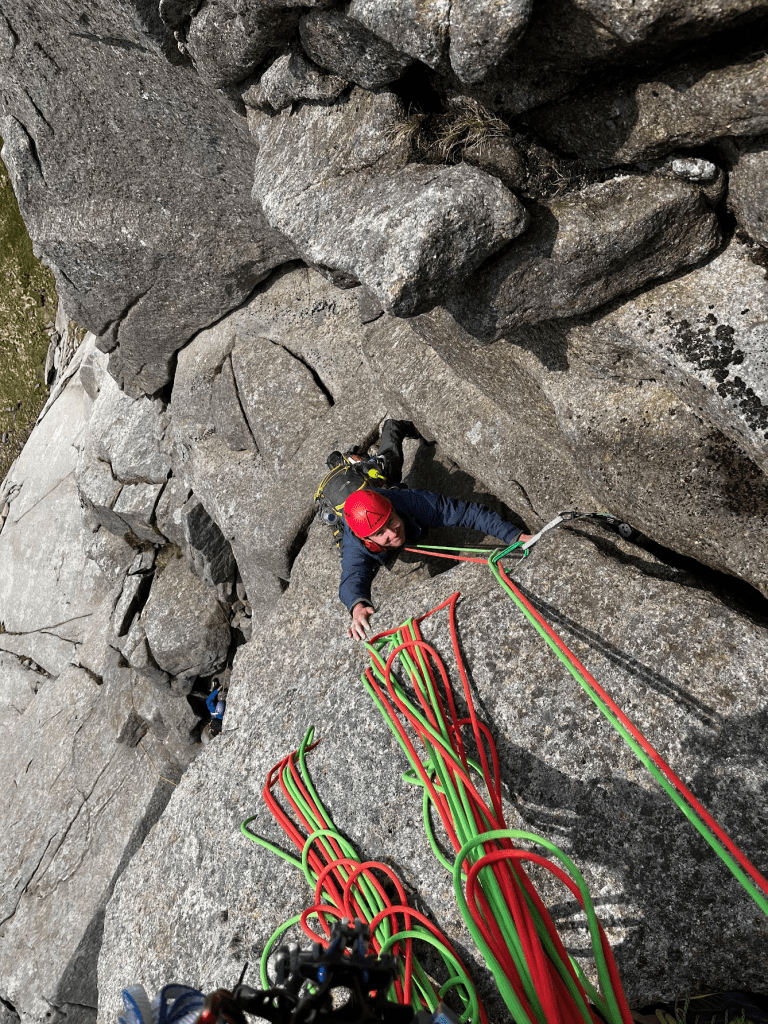 Immitating Dave Macloed on Hold Fast Hold True, he screamed “SHIT” as his fingers uncurled and he slumped on to the rope. What a brilliant effort! Not easy to commit that much in such an exposed position!