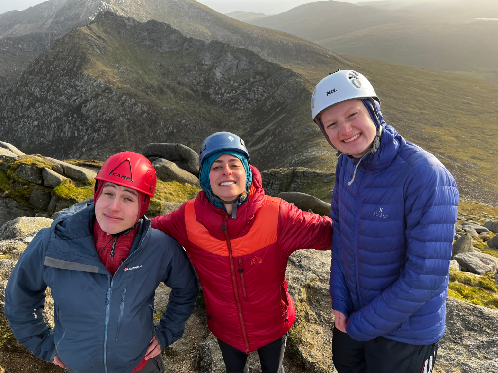 After a restful night, the plan for the next day was for Lara and I to tackle West Flank Route, and Meg and Fergus to take on Sou’wester slabs. After a slightly grim walk in, Lara geared up for the initial chimney pitch.