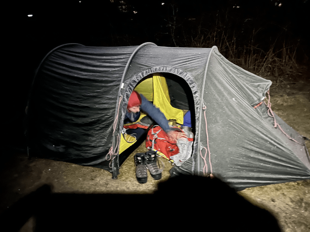 Firstly: be willing to spend nights out. Cars have encouraged people to do day trips: driving to or from their house or a hostel to do their climbing and hiking. This does make life easier: your bag is lighter, you can have a pint in the evening and warm up at home, or at the very least in campsite toliets. Awkward bus time-tables mean this often isn’t possible, forcing you to spend nights in the hills. Instead of seeing this as a disadvantage: this is surely one of the great pleasures of mountain life! Relish in the opportunity to spend a night with friends in a tent, bothy, or howff. Often, in these makeshift shelters, the best memories are forged and the most basic of luxuries become excellent. You can also often find campsites in the most unusual of place (those of you who know me well, know of my secret spot doss spot in Aviemore, a 10 minute walk from the centre) which will become favourite spots you visit time and time again.