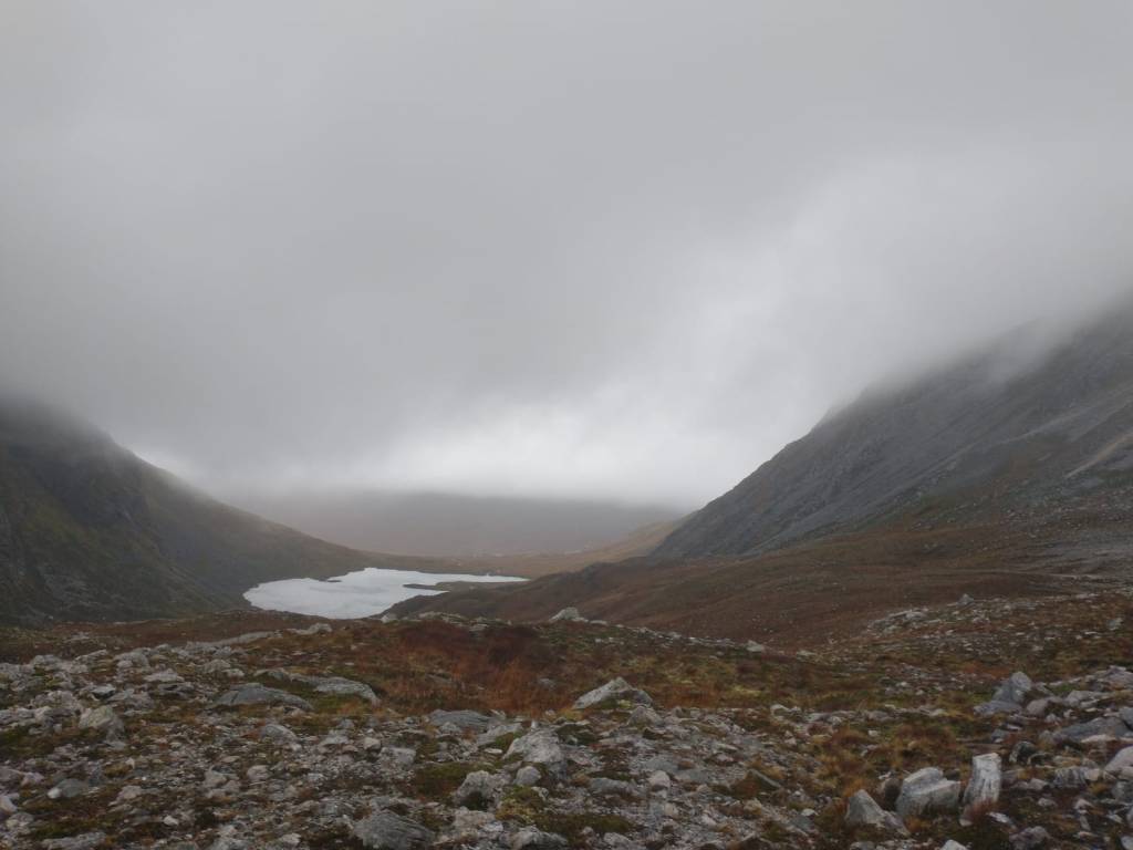 From here, we enjoyed a nice gradual descent down to a saddle, where we met a small lake where we took the opportunity to fill up with some water. Many high-level Munro rounds are notorious for having very few opportunities to re-fill along their course without a significant diversion, so any opportunities to refill should not be missed.