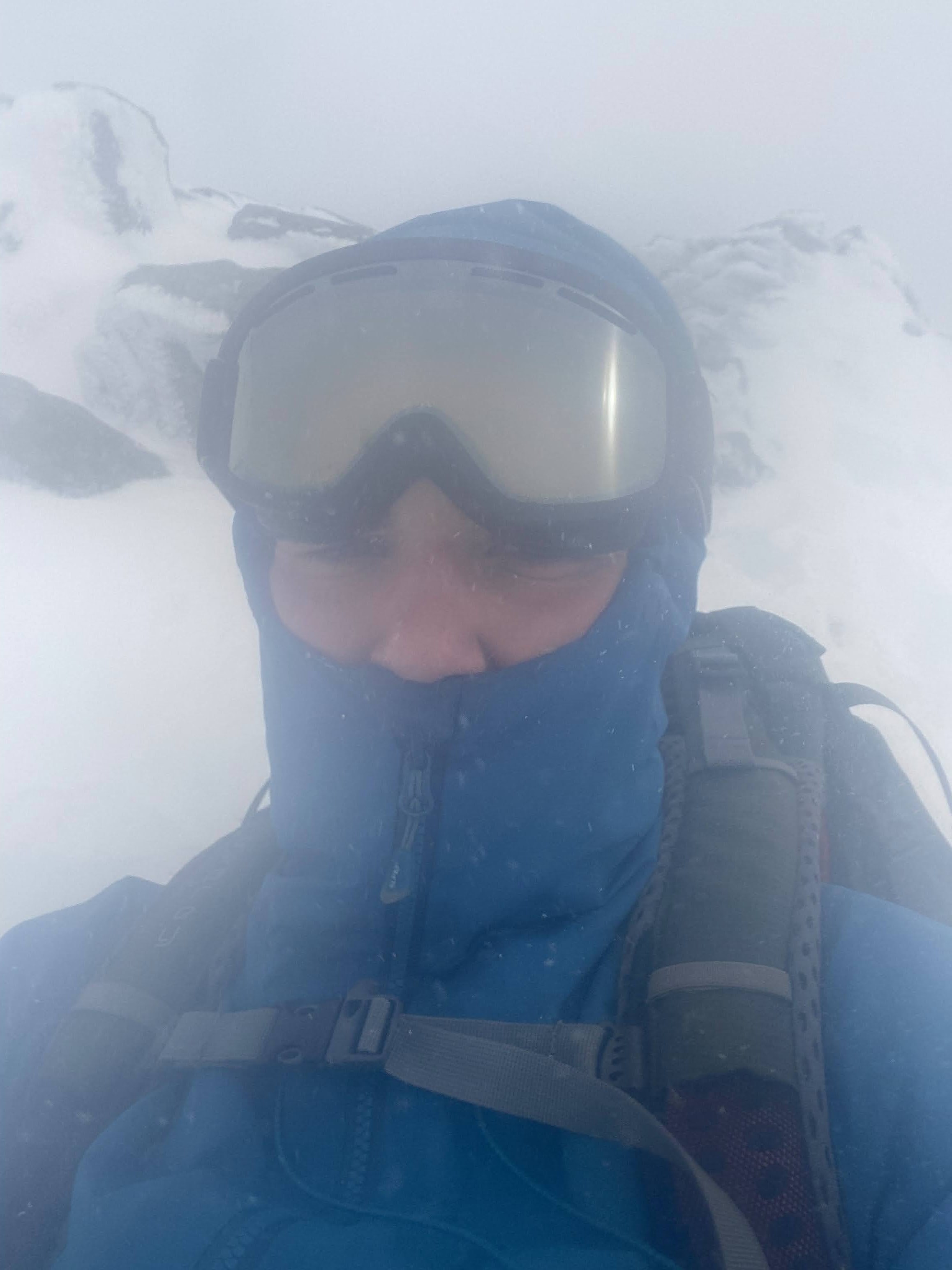 The views behind were astonishing, the mountains were all covered in snow and the sun was shining from behind. Spindrift blew over each summit, highlighting the ridges and cliffs like a halo. Perhaps it was just the elation of achieving something that stressed me out, but as I moved towards that summit, it was one of the most special moments I’ve had in the mountains: totally isolated, without a phone signal, surrounded by stomach-churningly stunning mountains. I felt totally self-reliant – totally free and it was magical. I think I’ll remember those few special minutes for a long time…