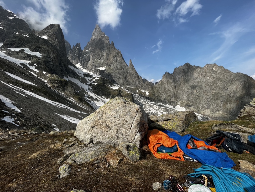 We topped out and walked back to the tents. I began to have my usual evening freak out. I expressed my doubts to Lara, who as ever was sympathetic but encouraging that we’d be fine (and she was of course, right!) I doubted that the rock would be dry, and that we’d be fast enough to get the route done in a reasonable amount of time. We put a message in a yummick group chat and we’re advised that it goes in the damp…I guess we would have to give it beans tomorrow and see how it turned out.
